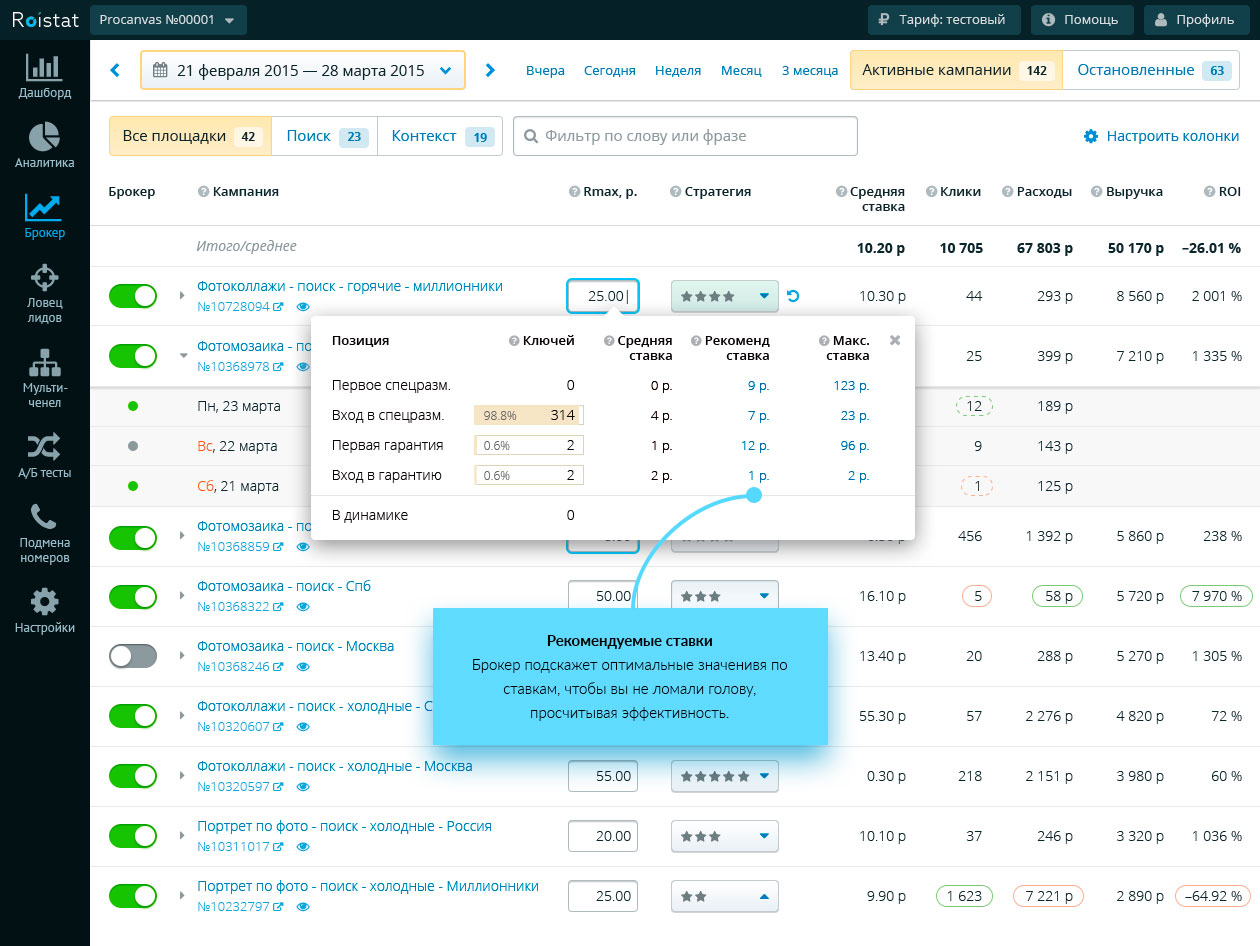 Брокер подскажет оптимальные значения по ставкам, чтобы вы не ломали голову, просчитывая эффективность.