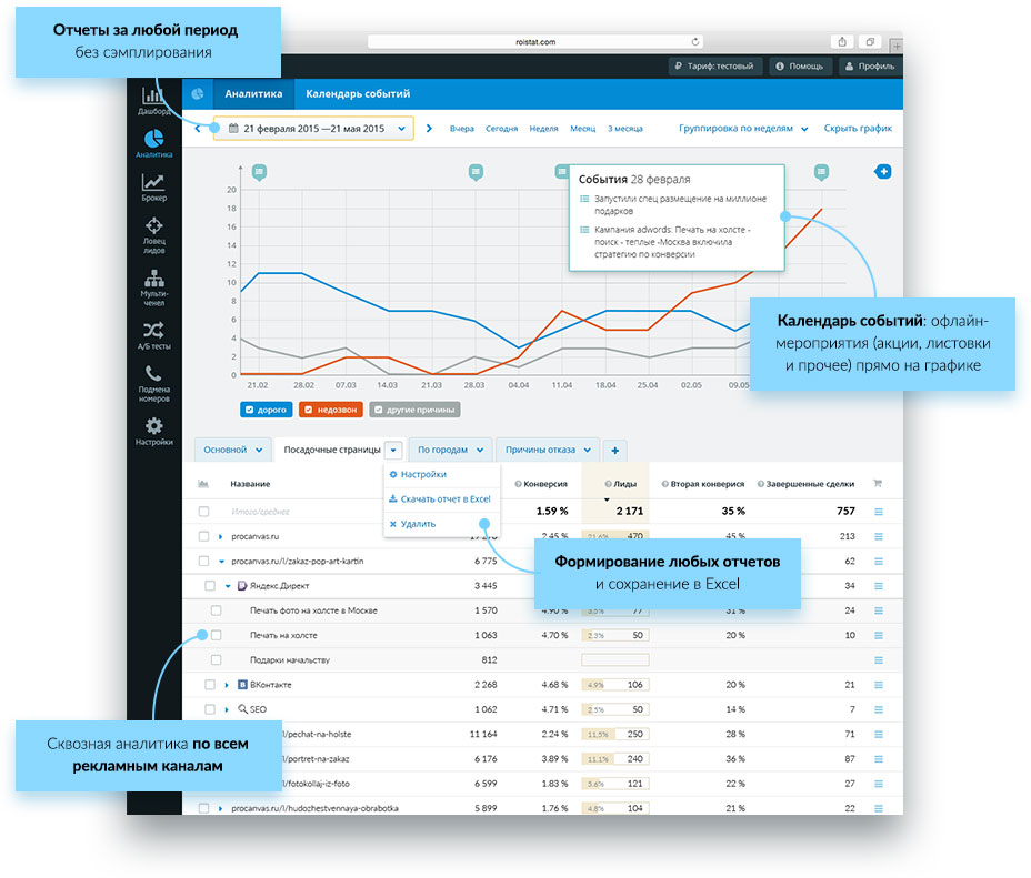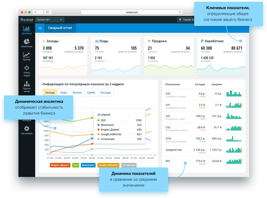 Сквозная аналитика и оценка эффективности бизнеса по 22 показателям